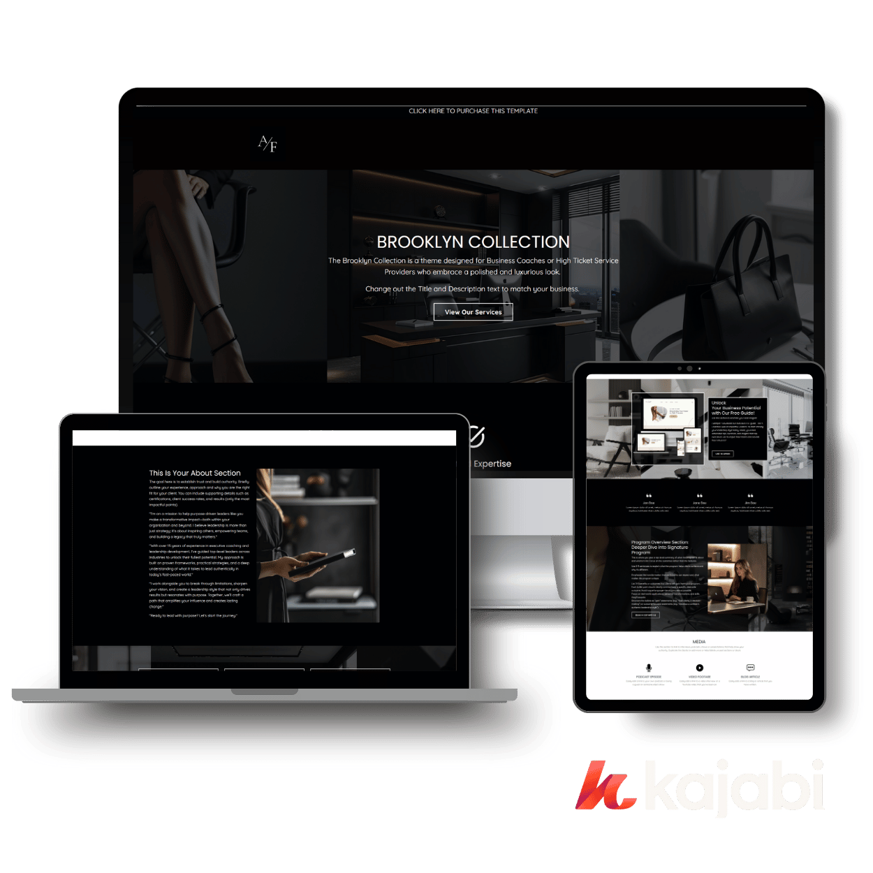 Elevate your coaching business with the Brooklyn Kajabi Website Template, a sleek and sophisticated design tailored for business coaches, life coaches, executive coaches, and high-ticket service providers.